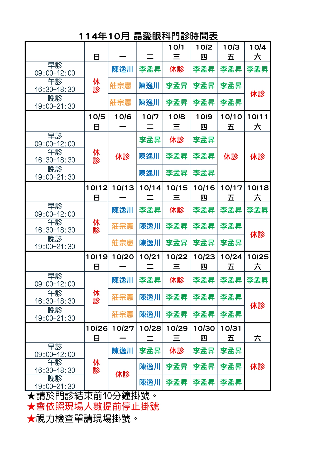 114/10月門診表